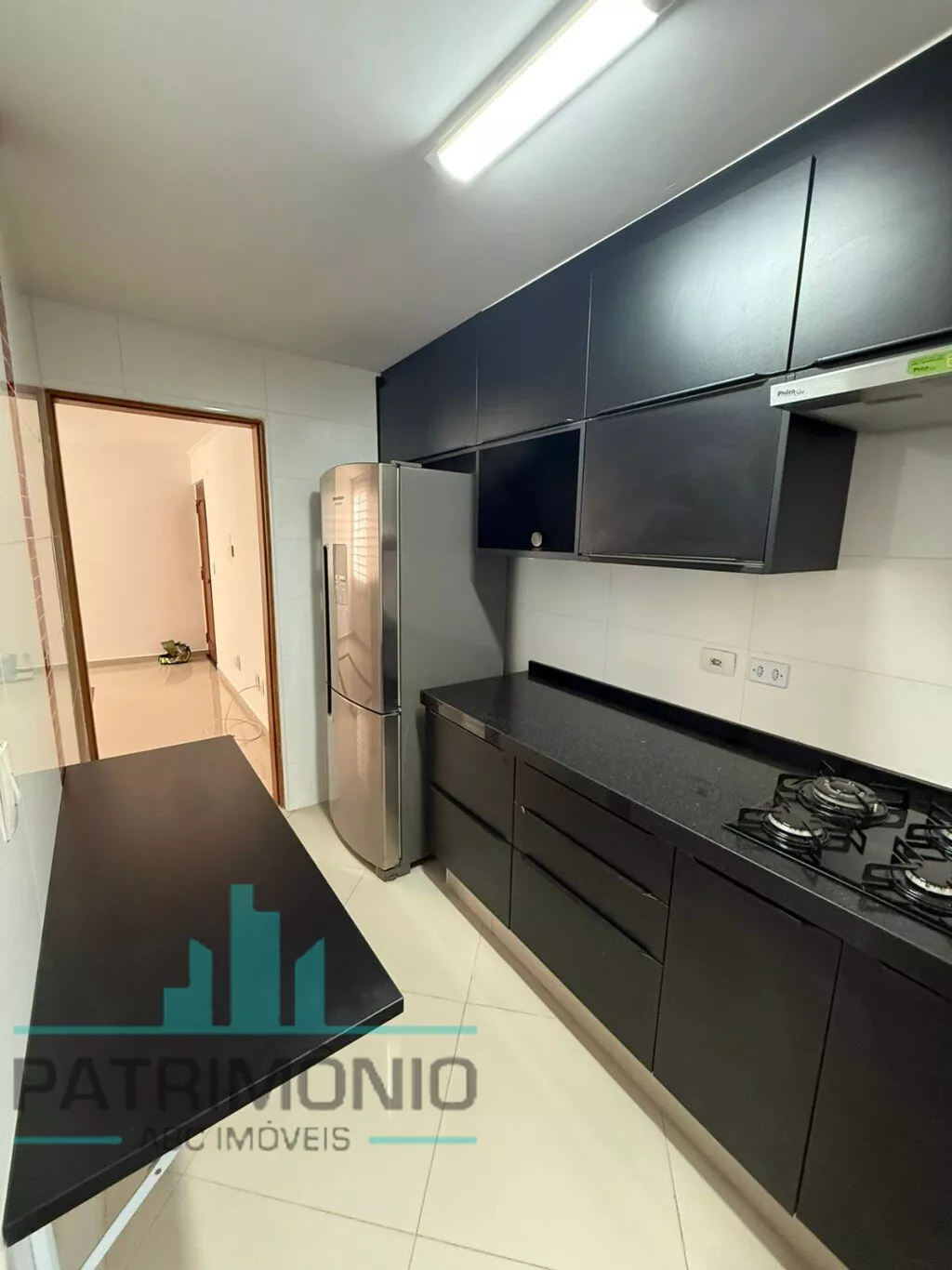 Cozinha planejada com coifa e cook top