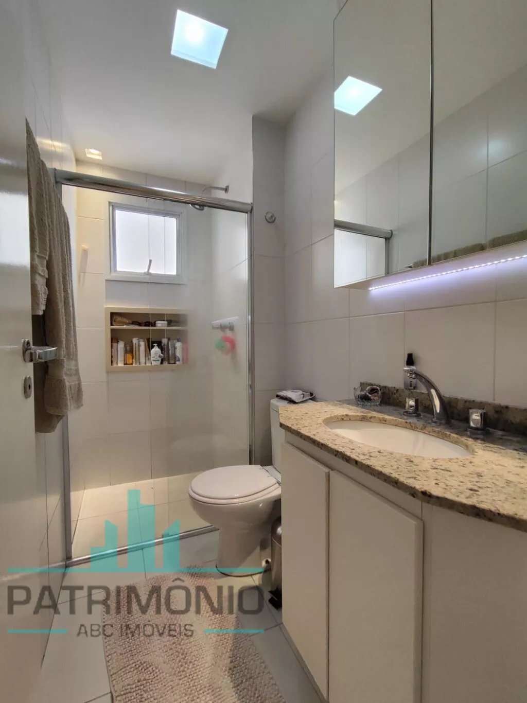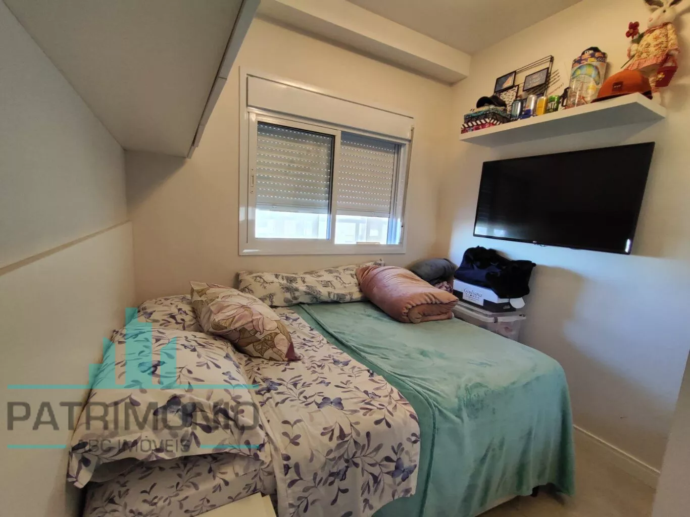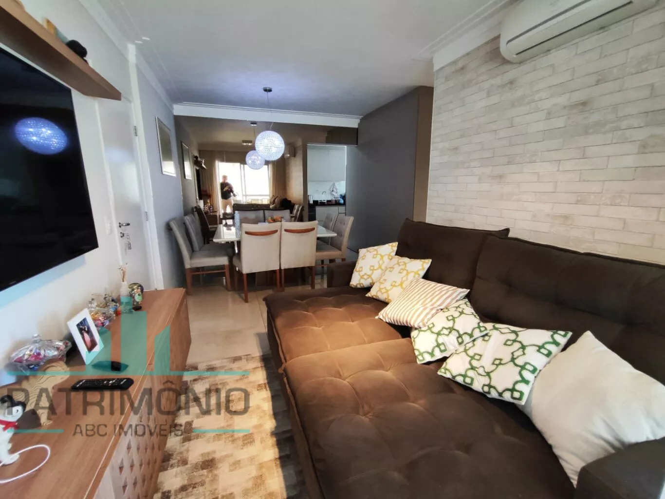 O imóvel está todo em porcelanato e conta com ar condicionado na sala e na suíte.