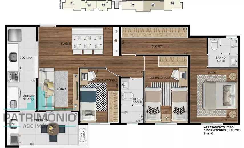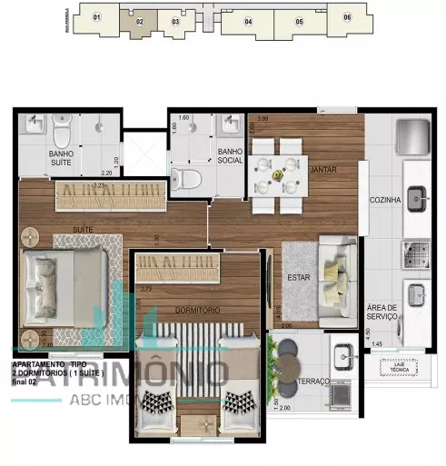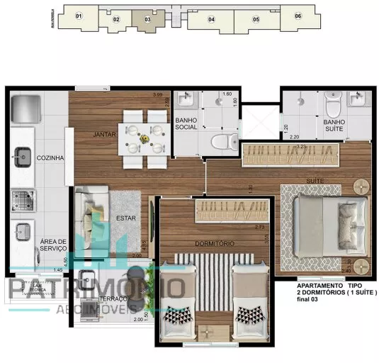 Descrição: 2 ou 3 dormitórios sendo 1 suíte, sala 2 ambientes integrada a cozinha, varanda gourmet, banheiro social, área de serviço e 2 vagas de garagem.