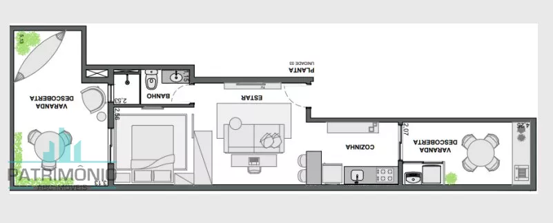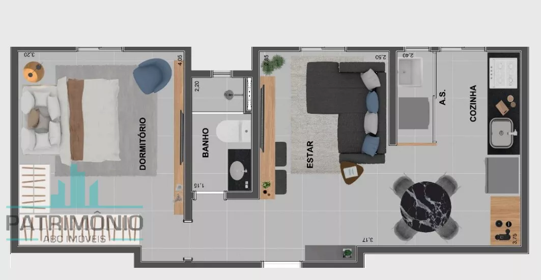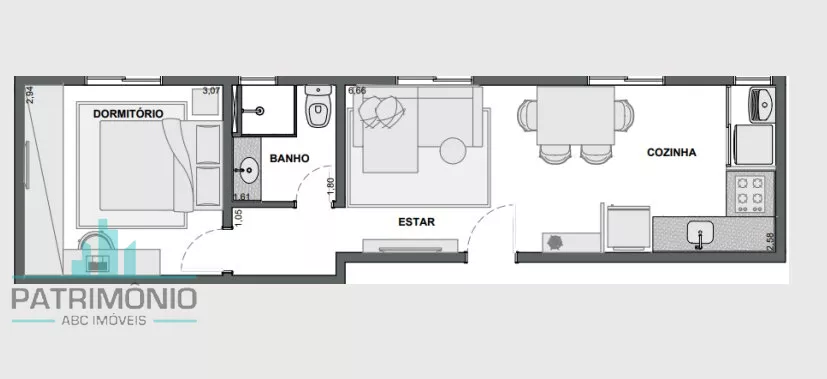 Descrição: 1 dormitório, sala, cozinha, banheiro social, área de serviço e 1 vaga de garagem.