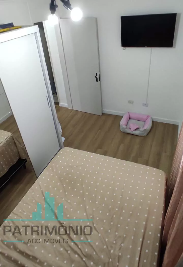 Descrição: 2 dormitórios, 1 banheiro social, sala de TV, área de serviço e 1 vaga de garagem fixa e coberta.