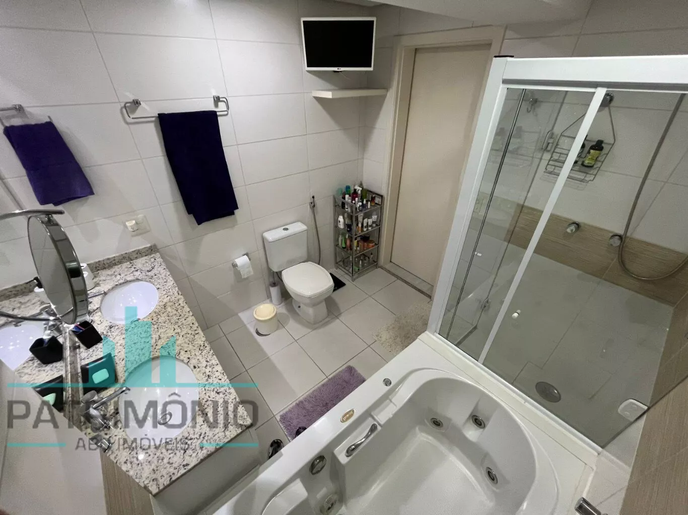 – 3 suítes, sendo 1 master com varanda privativa e banheira de hidromassagem;