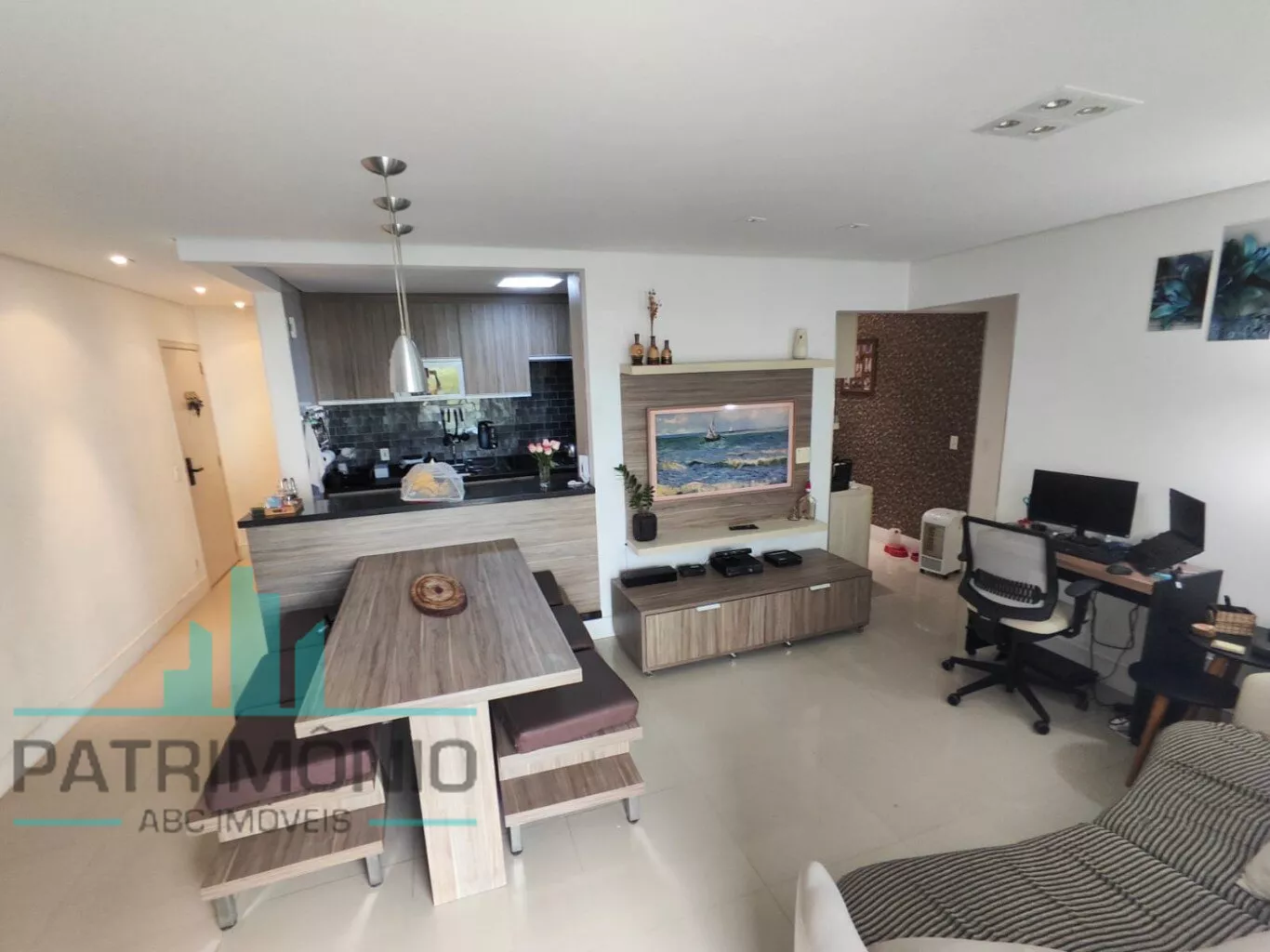 Apartamento de 96 m² com excelente distribuição interna. Conta com 3 dormitórios (sendo 1 suíte), sala ampla para 2 ambientes, espaço para home office, lavabo e banheiro social. Varanda gourmet envidraçada com churrasqueira, cozinha planejada e equipada, área de serviço com despensa e armários planejados em todos os ambientes. Possui ainda 2 vagas de garagem.