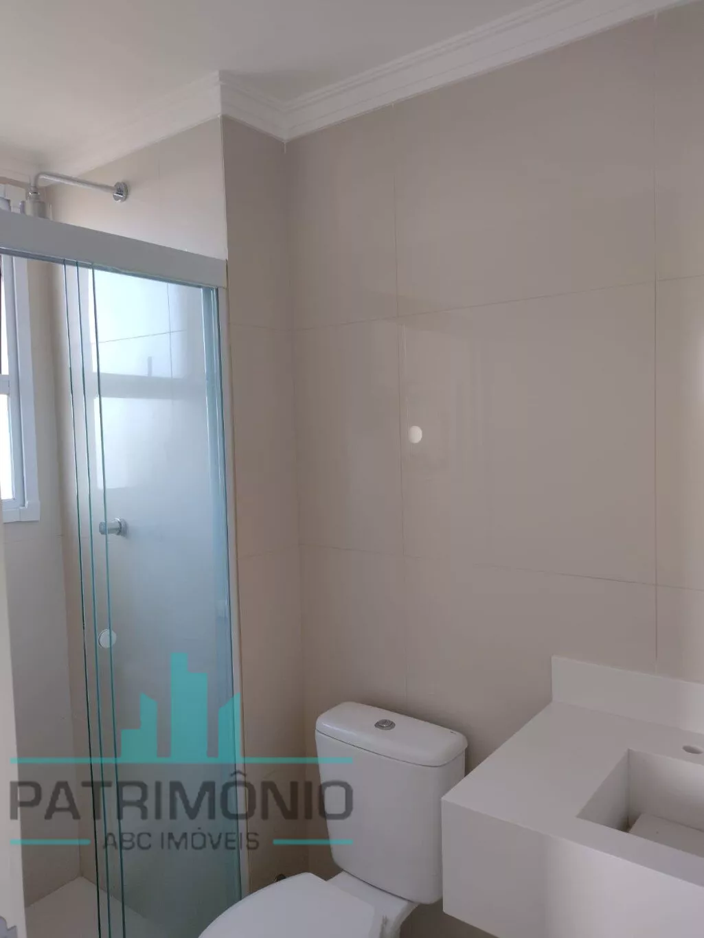 Banheiros com porcelanato no piso e paredes, pias esculpidas em quartzo branco e box instalados;