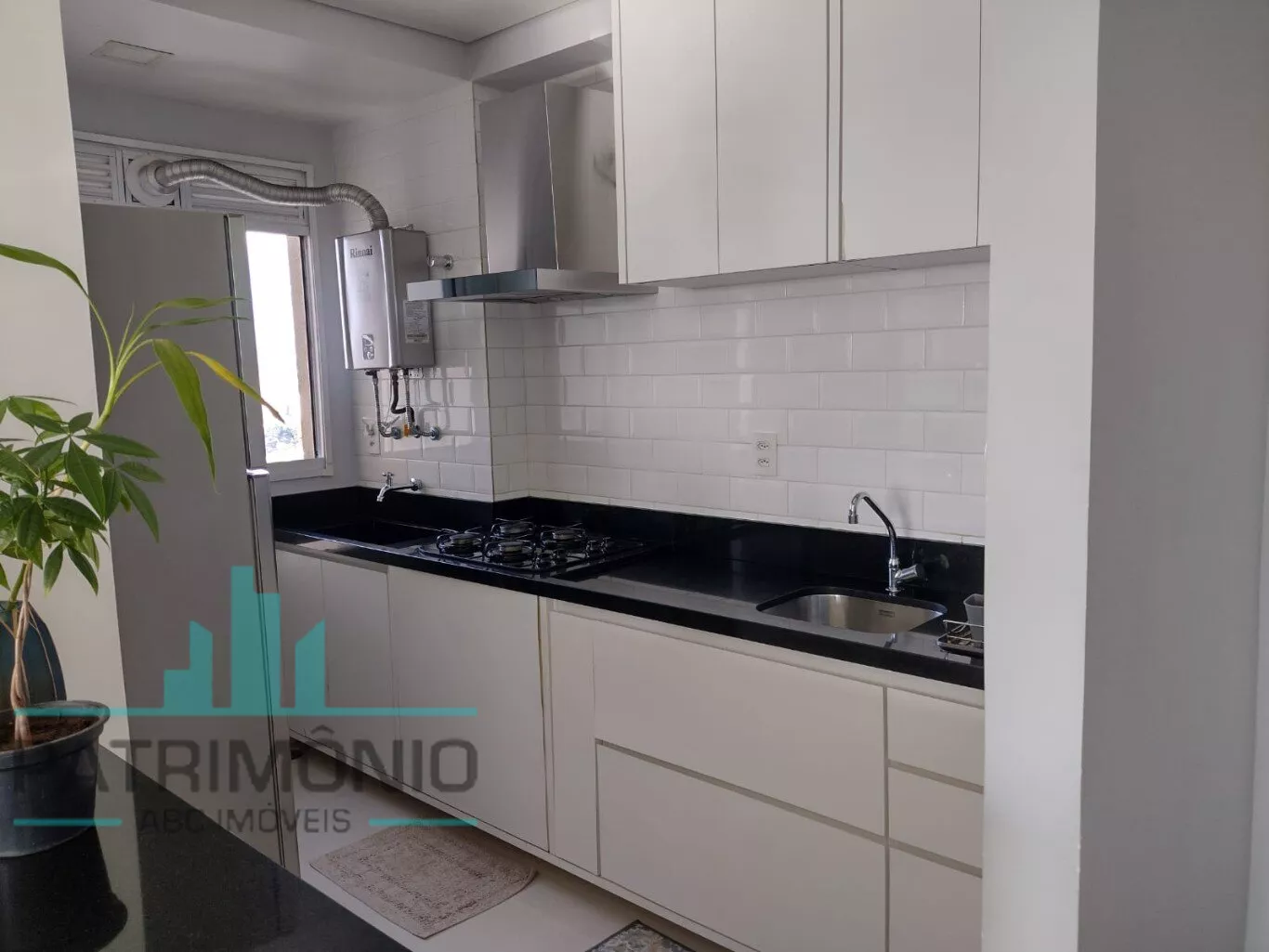 Cozinha com bancadas e tanque esculpido em granito preto absoluto;