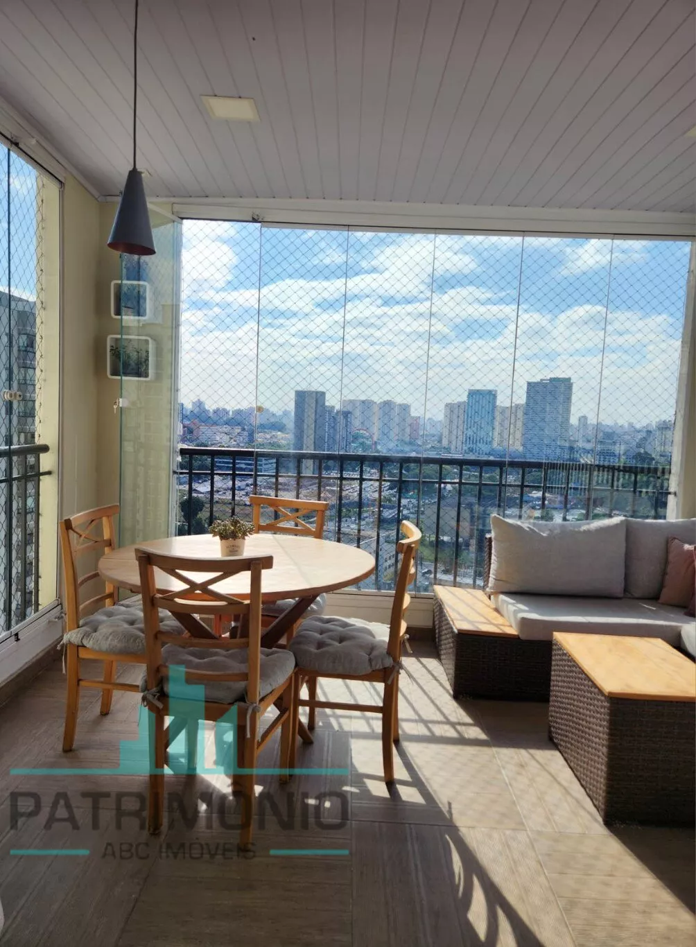 Sacada coberta e envidraçada, ideal para aproveitar em qualquer estação;