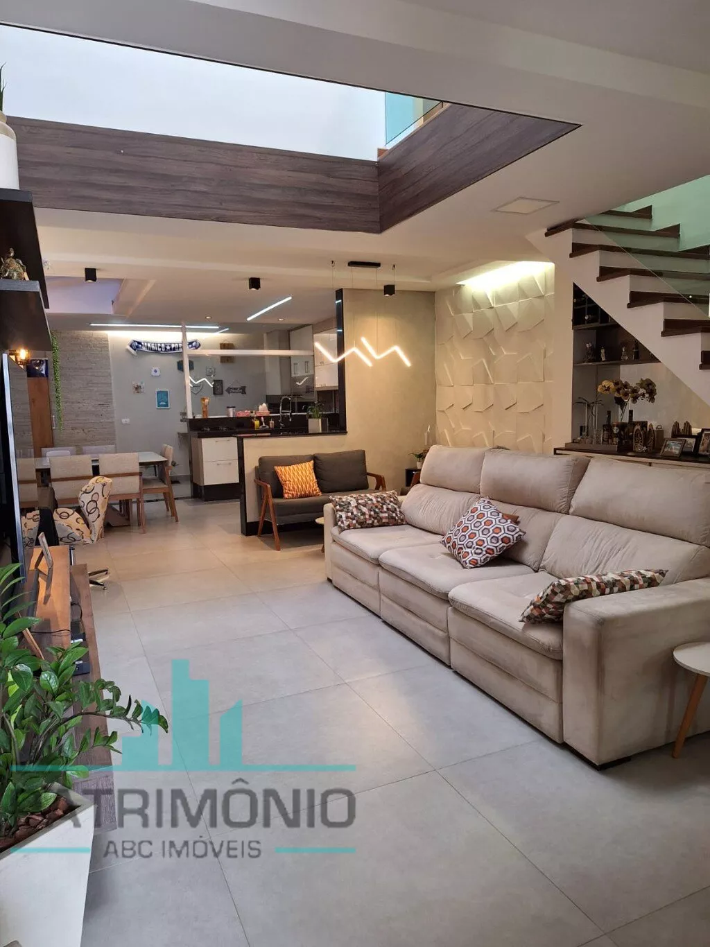 Com 163m² o sobrado oferece: Uma ampla sala 3 ambientes integrada a cozinha americana com teto retrátil, 4 dormitórios (sendo 3 suítes), 5 banheiros, espaço gourmet amplo, área de serviço funcional e 3 vagas de garagem.