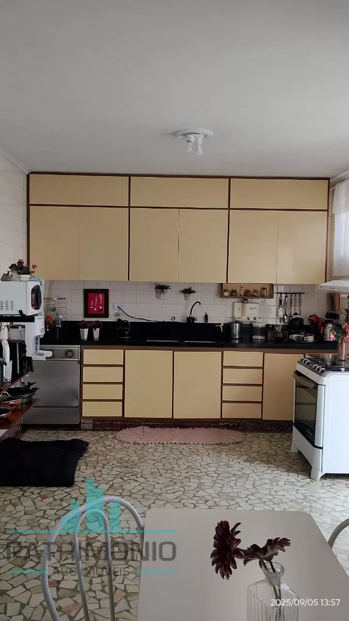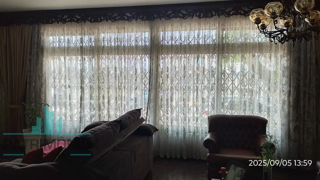 Sobrado espaçoso com sala e cozinha amplas, 4 dormitórios sendo 1 suíte, 3 banheiros, lavanderia, quarto de empregada, corredor lateral, quintal amplo e 3 vagas de garagem com portão automático.