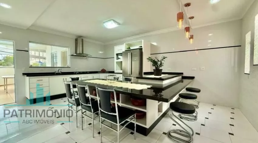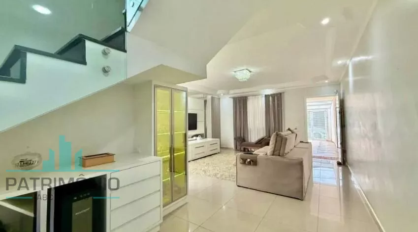 Sobrado espaçoso com 208 m² de área construída, distribuído em 3 dormitórios (1 suíte com closet, banheiro com banheira e sacada), sala ampla e bem iluminada com cristaleira, cozinha planejada, área de serviço, quintal com churrasqueira e 4 vagas de garagem.