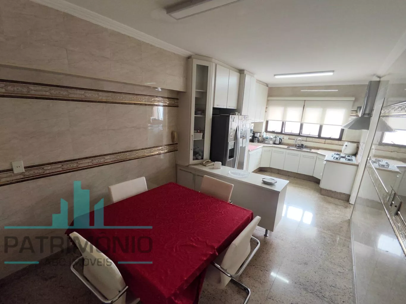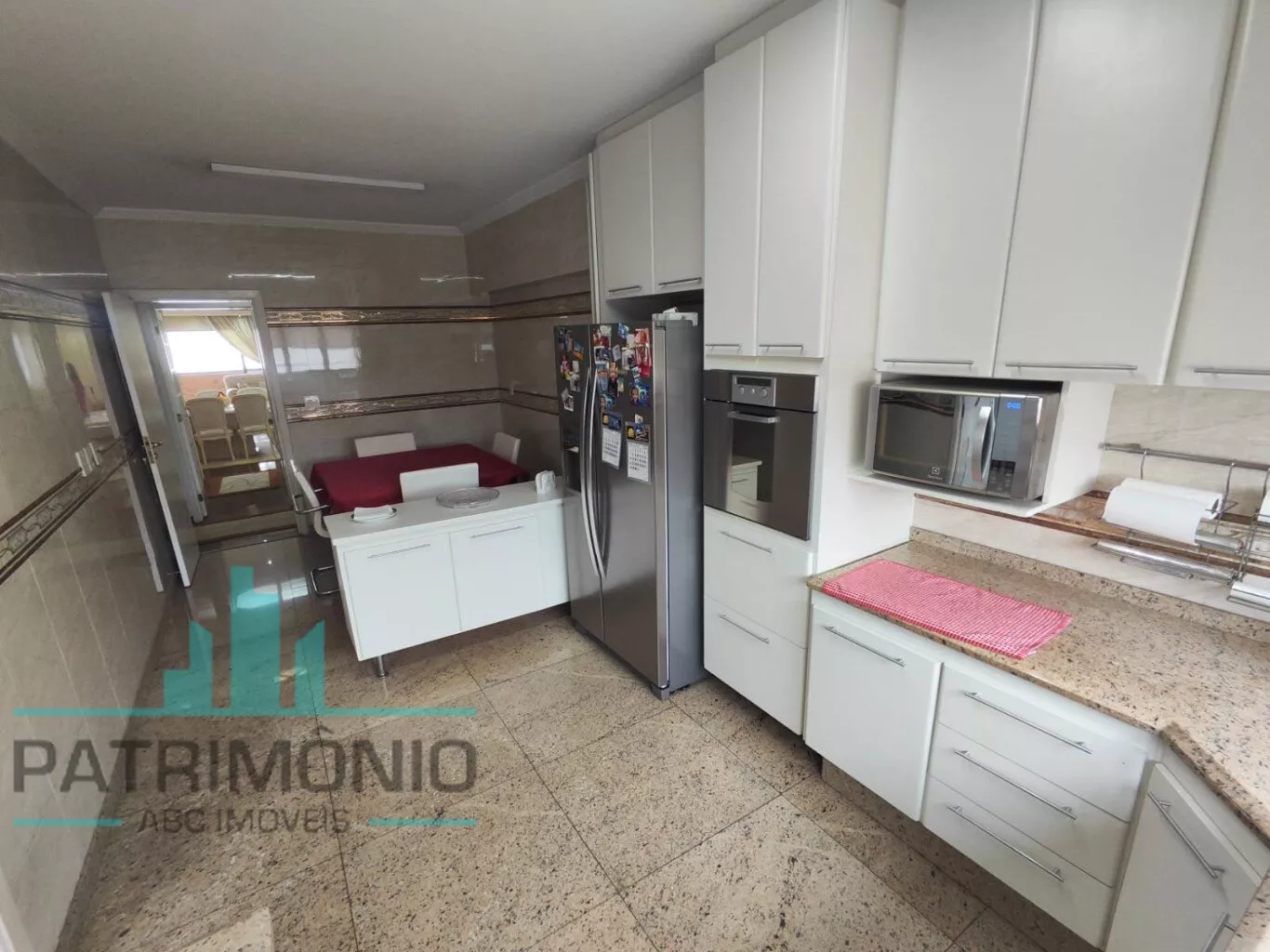 ✔ Cozinha planejada com piso em granito, equipada com cooktop, forno elétrico, micro-ondas, coifa e geladeira duplex