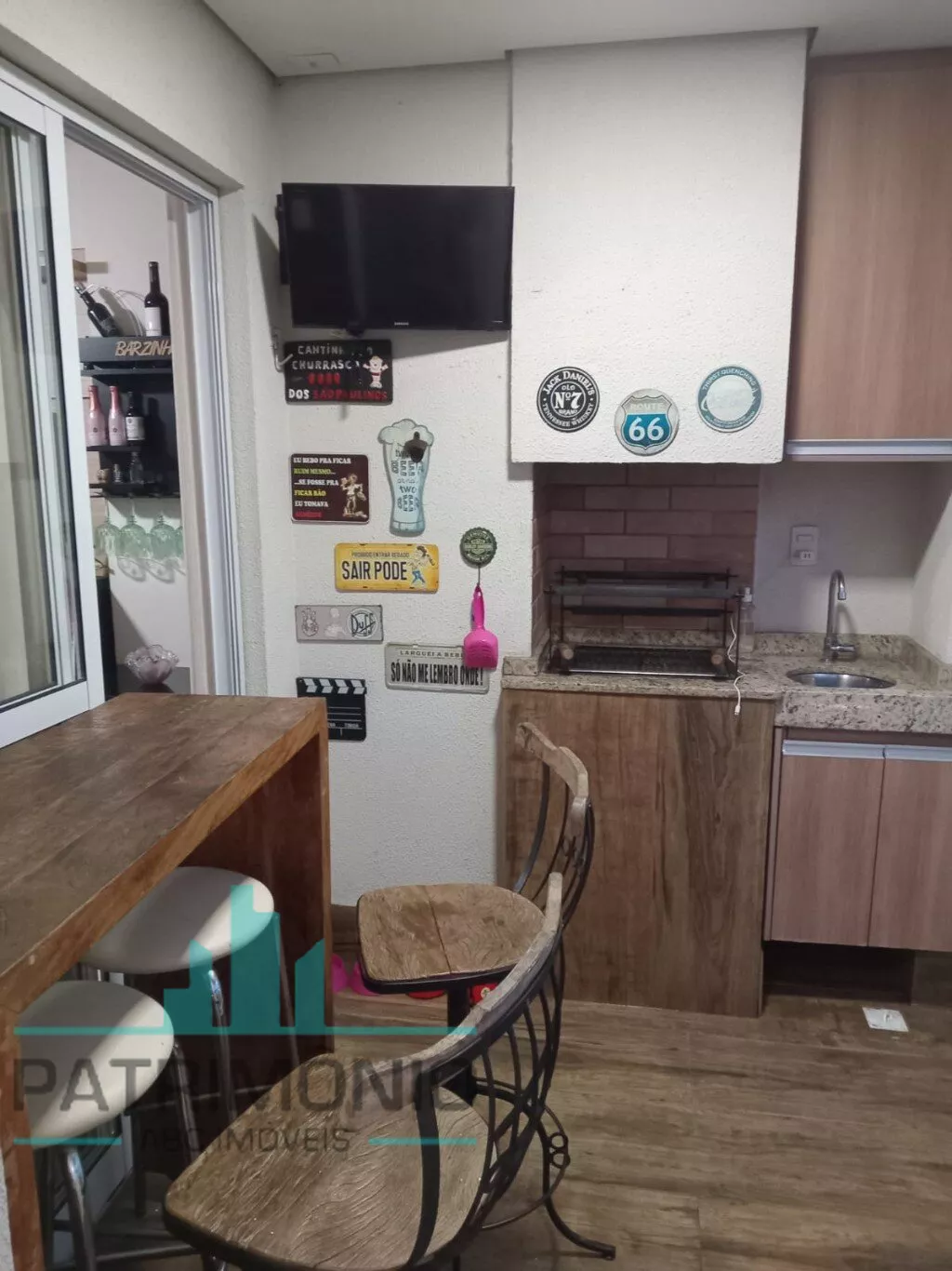 Sala ampla para 2 ambientes integrada à sacada gourmet