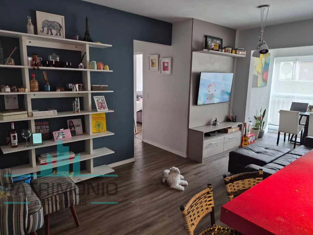 Sala ampla e bem iluminada com sacada gourmet